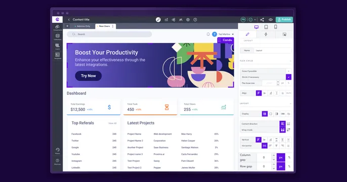 Build and publish mobile/web apps effortlessly with a no-code platform.
