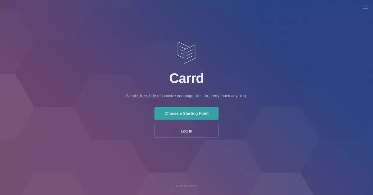 Carrd is a platform for building simple, fully responsive one-page websites. It's ideal for creating personal profiles, landing pages, or small sites quickly and for free, with optional upgrades for additional features.