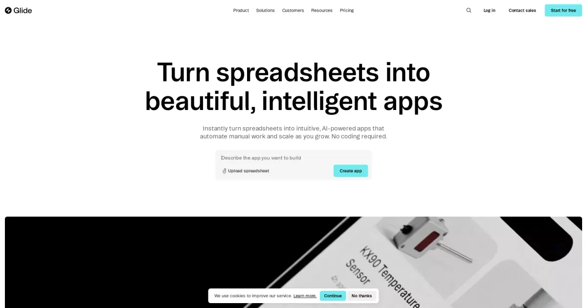 Glide is a no-code platform that transforms spreadsheets into custom, AI-powered mobile and web apps. It allows users to build, update, and scale data-driven apps quickly without coding knowledge, making it ideal for businesses seeking efficient, automated solutions.