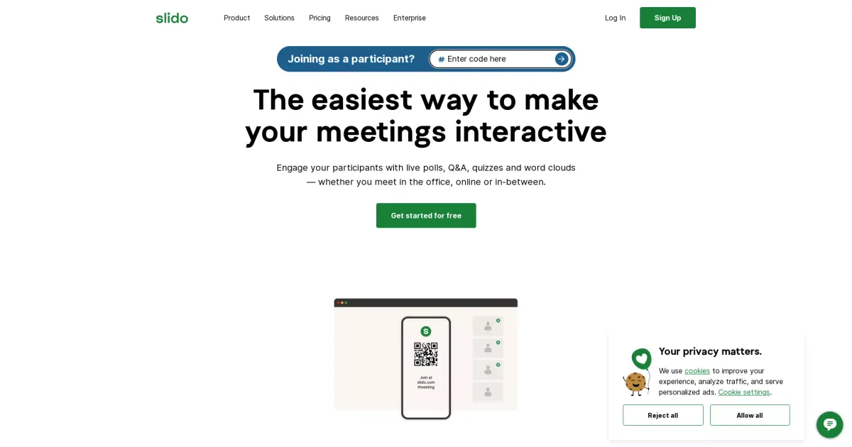 Slido is an easy-to-use platform that enhances audience engagement through live polls, Q&A, quizzes, and word clouds, making meetings, events, and conferences more interactive and dynamic.